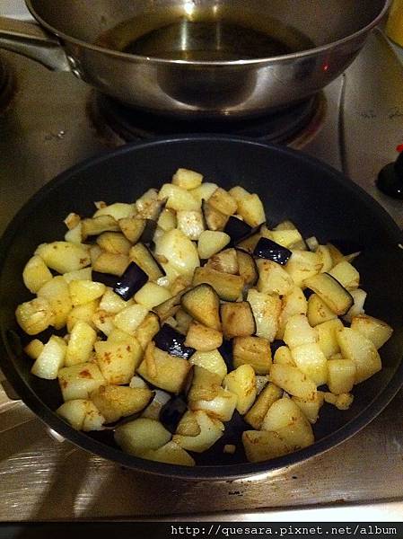 (因為茄子很吸油,所以一定要在炸完馬鈴薯後再炸~)