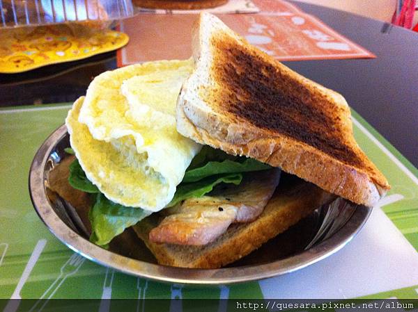 今天早餐中夾的Omelette, 是我只用1顆蛋放入蒸煮鍋做出來的