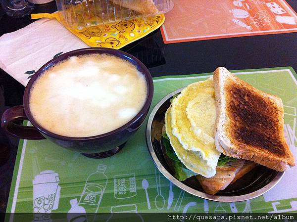 火雞胸肉三明治夾蛋(無油)+拿鐵(脫脂奶) 333.5大卡