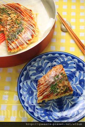 6. Serve Teppanyaki with some Tonkatsu sauce/ HP sauce and Mayonnaise, and sprinkle some aoko powder (seaweed powder) on top.